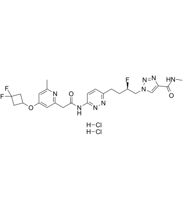IPN-60090 dihydrochloride is an orally bioavailable and selective inhibitor of GLS1 (the kidney-type glutaminase), an important enzyme for metabolic energy production. IPN-60090 dihydrochloride can be used in the research of GLS1-mediated diseases[1][2].