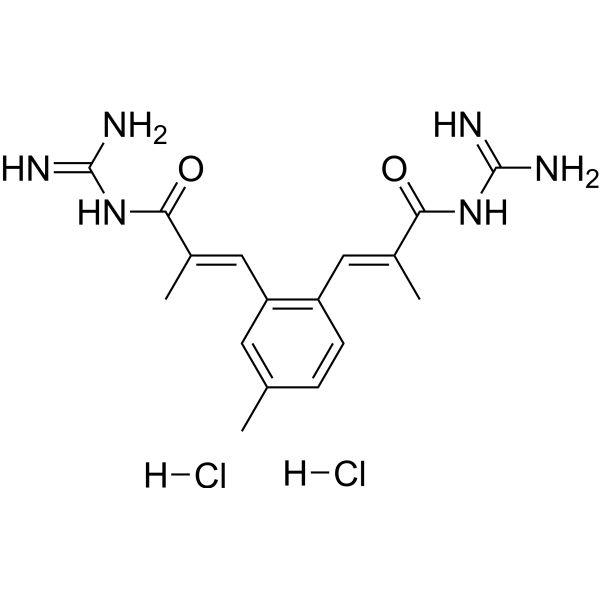 | SMILES: | [H]Cl.[H]Cl.C/C(C(NC(N)=N)=O)=C\C(C=CC(C)=C1)=C1/C=C(C)/C(NC(N)=N)=O |
