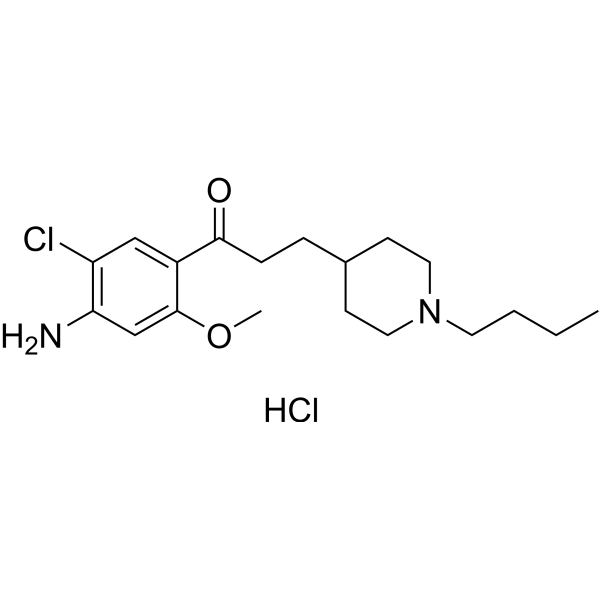 RS 67333 hydrochloride is a potent and selective 5-HT4 receptor (5-HT4R) partial agonist with a pKi of 8.7 in guinea-pig striatum. RS 67333 hydrochloride exhibits lower affinities at several other receptors including 5-HT1A, 5-HT1D, 5-HT2A, 5-HT2C, dopamine D1, D2 and muscarinic M1-M3 receptors. RS 67333 hydrochloride has neuroprotective effects, and can be used for Alzheimer's disease research.