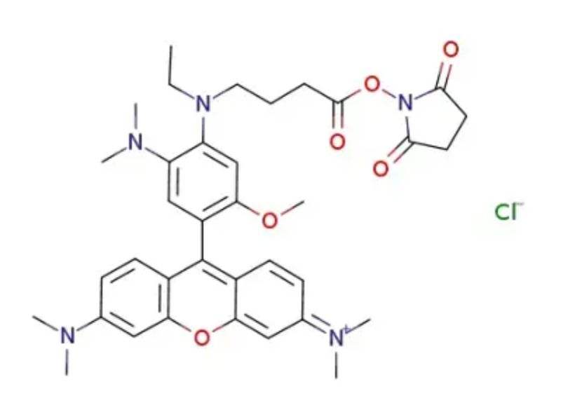 pHrodo-NHS is an NHS ester of a pH-sensitive fluorescent dye. The NHS ester at its terminus can covalently conjugate with the amine groups of proteins or peptides, enabling stable labeling. This dye exhibits pH sensitivity, showing weak fluorescence in neutral or alkaline environments but significantly enhanced fluorescence in acidic conditions (pH 4–6), making it suitable for dynamically monitoring acidic processes.