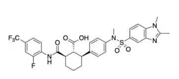 GLPG2451 (GLPG 2451) is a potent potentiator of cystic fibrosis transmembrane conductance regulator (CFTR) with EC50 of 11 nM for F508del CFTR in the YHA assay and EC50 of 18 nM in TECC assay using HBE cells from patients carrying the F508del mutation. GLPG2451 improves the gating function of the CFTR channel.