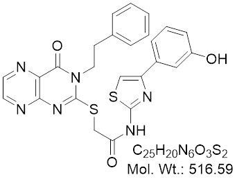 T025 is as an orally available and potent inhibitor of Cdc2‐like kinases (CLKs) with an IC50s of 0.93 nM, 1 nM, 14 nM, 1.5 nM for CLK1, CLK2, CLK3, DYRK1B respectively. It exhibits anti‐tumor efficacy and can be used in MYC‐driven cancer research.