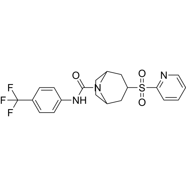 BMS-195614 is a potent, orally bioavailable RARα antagonist (Ki = 2.5 nM) that modulates multiple signaling pathways. It upregulates Bcl2 expression while suppressing NF-κB, AP-1, and PPAR transactivation. Additionally, it reduces IL-6 and VEGF production, mitigates phototoxic damage from blue light, and exhibits anti-migratory, anti-inflammatory, and anti-angiogenic properties.