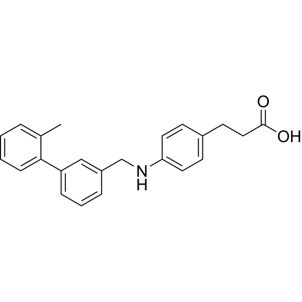 TUG-499 is a selective free fatty acid receptor 1 (FFAR1 or GPR40) (Free Fatty Acid Receptor) agonist with a pEC50 of 7.39. TUG-499 exhibits >100-fold selectivity over the related receptors FFA2, FFA3, and the nuclear receptor PPARγ and other diverse receptors, ion channels, and transporters. TUG-499 can be used for the research of type 2 diabetes.