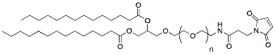 DMG-PEG-Mal, MW 2,000 is a lipid PEG consisting of DMG and maleimide for reacting with thiols between pH 6.5 to 7.5