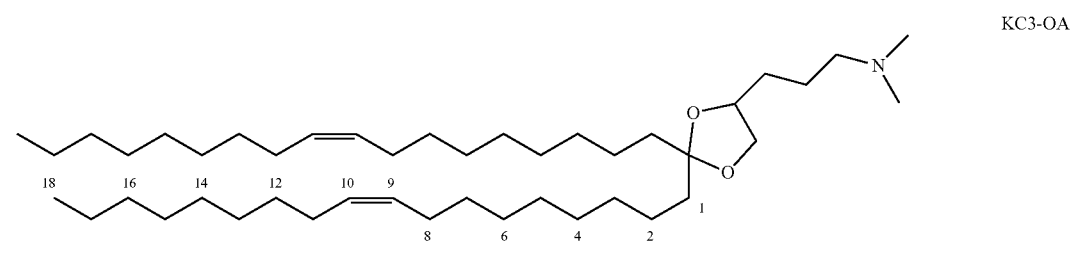 Experimental data demonstrate that KC3-OA-based LNPs achieve superior mRNA expression in human dendritic cells, outperforming alternatives like KC3-PA or KC3-01 in both in vitro and in vivo models. For instance, in FIG. 2, KC3-OA LNPs showed ~2-fold higher mCherry expression at low mRNA doses (0.1 μg/mL) due to improved cellular uptake and reduced degradation. Its synergy with anionic phospholipids like DPPS (5 mol%) further enhances dendritic cell targeting via receptor-mediated internalization, leading to robust CD4+ and CD8+ T-cell responses against Mycobacterium tuberculosis antigens. This balance of stability, efficiency, and immunogenicity makes KC3-OA a leading candidate for next-generation vaccines.