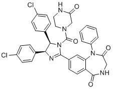 Milademetan (DS-3032) is a specific and orally active MDM2 inhibitor for the research of acute myeloid leukemia (AML) or solid tumors. Milademetan (DS-3032) induces G1 cell cycle arrest, senescence and apoptosis.