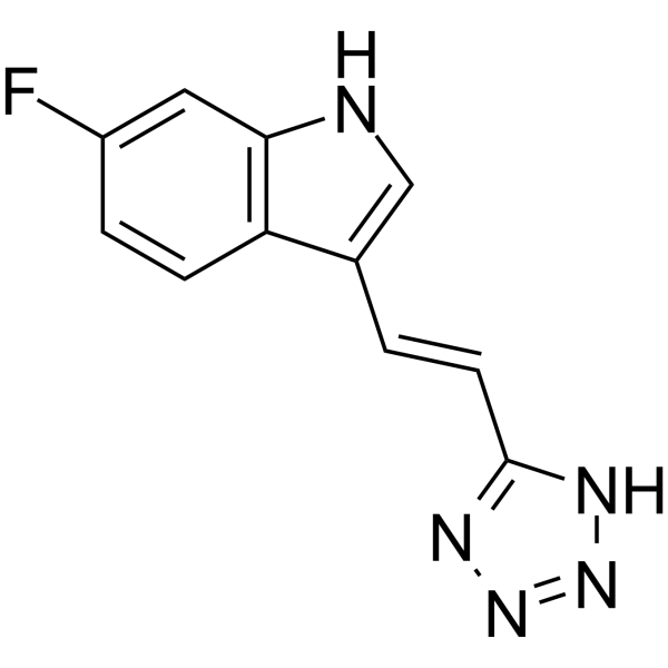 LM10 is a potent inhibitor of tryptophan 2,3-dioxygenase (TDO). Tryptophan 2,3-dioxygenase (TDO) is an unrelated hepatic enzyme that also degrades tryptophan along the kynurenine pathway. LM10 has the potential for the research of cancer diseases.