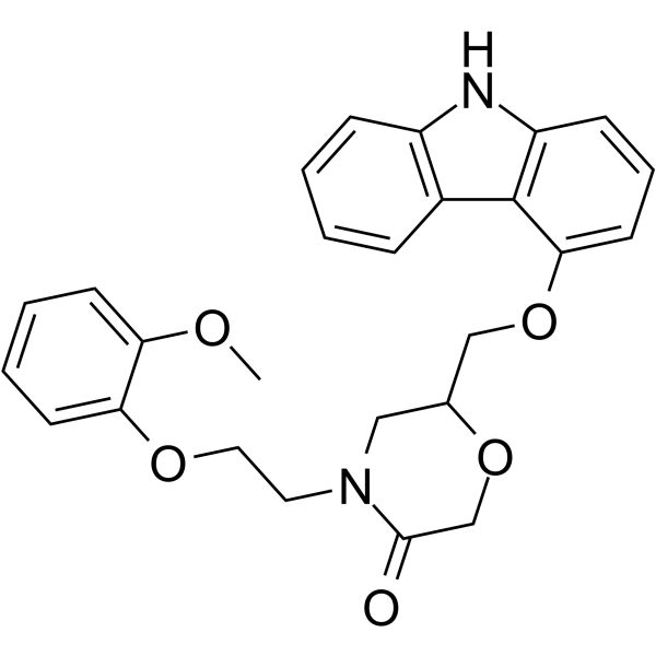 VK-II-36, a structural analog of carvedilol, selectively suppresses sarcoplasmic reticulum Ca²⁺ release without exhibiting β-receptor blocking activity. It effectively inhibits both early and delayed afterdepolarizations, thereby preventing triggered arrhythmias. This unique pharmacological profile makes VK-II-36 a promising candidate for antiarrhythmic therapy.