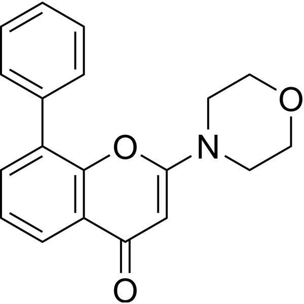 LY294002 is a PI3K inhibitor for p110α, p110δ and p110β with IC50 of 0.5 μM, 0.57 μM and 0.97 μM, respectively.