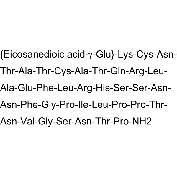 Cagrilintide is an investigational novel long-acting acylated amylin analogue, acts as nonselective amylin receptors (AMYR) and calcitonin G protein-coupled receptor (CTR) agonist. Cagrilintide induces significant weight loss and reduces food intake. Cagrilintide has the potential for the research of obesity.