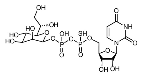 UDSP-Hep is a bacterial ADP-heptose analogue. UDSP-Hep is a potent ALPK1 agonist with EC50 of 0.0423 μM. UDSP-Hep distinguishs Alpk1 polymorphism and exhibits a stronger Alpk1-mediated antitumour effect and synergized with checkpoint inhibitors.