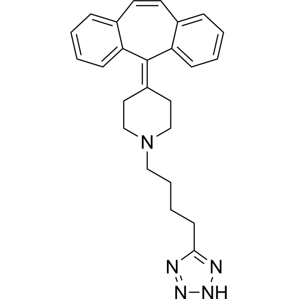 L-657926 is a stereoselective antagonist of the thromboxane A2 (TxA2) receptor, composed of (-)-9-chlorobenzyl-6-fluoro-1,2,3,4-tetrahydrocarbazol-1-yl acetic acid and (+)-9-chlorobenzyl-6-fluoro-1,2,3,4-tetrahydrocarbazol-l-yl acetic acid. The IC50s of (-) and (+) configurations for TxA2 are 0.27 nM and 124 nM, respectively.