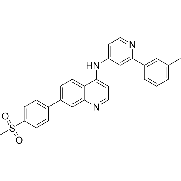 CDD-1653 (CDD1653) is a potent, selective inhibitor of BMP type 2 receptor BMPR2 with IC50 of 2.8 nM, >360-fold over ALK1, and is inactive versus all other type 1 and type 2 TGFβ family kinases.