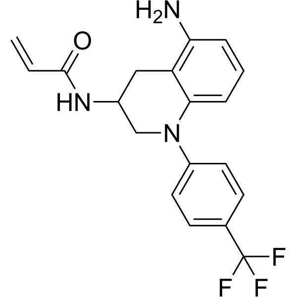 MYF-03-69 is a selective, covalent, irreversible TEAD inhibitor, binds with TEAD palmitate pocket, disrupts YAP-TEAD association, suppresses TEAD transcriptional activity (IC50=45 nM) and inhibits cell growth of defective Hippo signaling.