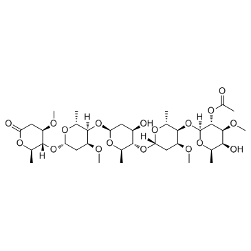 SMILES: | CC(O[C@H]([C@H]([C@@H](O)[C@@H](C)O1)OC)[C@]1([H])O[C@H]2[C@H](C[C@@](O[C@H]3[C@@H](C[C@H](O[C@@]4([H])[C@H](C[C@H](O[C@@]5([H])[C@@H](CC(O[C@@H]5C)=O)OC)O[C@@H]4C)OC)O[C@@H]3C)O)([H])O[C@@H]2C)OC)=O |