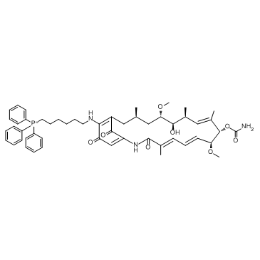SMILES: | O=C(C=C1NC(/C(C)=C/C=C/[C@H](OC)[C@@H](OC(N)=O)/C(C)=C/[C@H](C)[C@H]2O)=O)C(NCCCCCC[P+](C3=CC=CC=C3)(C4=CC=CC=C4)C5=CC=CC=C5)=C(C[C@H](C[C@@H]2OC)C)C1=O |