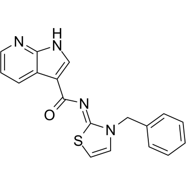 SMILES: | O=C(C1=CNC2=NC=CC=C12)/N=C(SC=C3)/N3CC4=CC=CC=C4 |