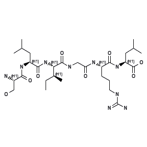 SMILES: | CC[C@@H]([C@H](NC([C@@H](NC([C@@H](N)CO)=O)CC(C)C)=O)C(NCC(N[C@H](C(N[C@H](C(O)=O)CC(C)C)=O)CCCNC(N)=N)=O)=O)C |