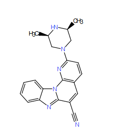 Chemical Name: | 2-((3S,5R)-3,5-dimethylpiperazin-1-yl)benzo[4,5]imidazo[1,2-a][1,8]naphthyridine-6-carbonitrile |