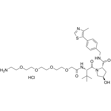 Chemical Name: | (2S,4R)-1-((S)-17-Amino-2-(tert-butyl)-4-oxo-6,9,12,15-tetraoxa-3-azaheptadecanoyl)-4-hydroxy-N-(4-(4-methylthiazol-5-yl)benzyl)pyrrolidine-2-carboxamide Hydrochloride |