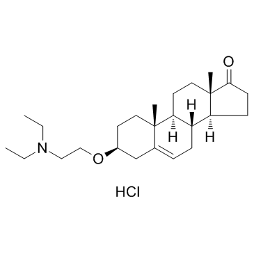 SMILES: | C[C@@]12[C@]3([H])[C@](CC=C1C[C@@H](OCCN(CC)CC)CC2)([H])[C@@]4([H])[C@@](C)(C(CC4)=O)CC3.Cl |