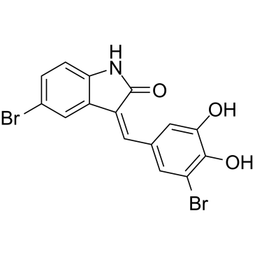 SMILES: | BrC1C=C2/C(=C/C3C=C(O)C(O)=C(Br)C=3)/C(=O)NC2=CC=1 |