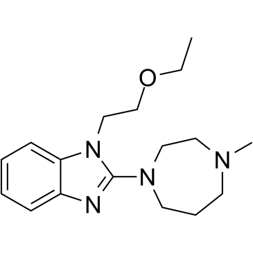 Description: | Emedastine is an orally active, selective and high affinity histamine H1 receptor antagonist with a Ki value of 1.3 nM. Emedastine is a benzimidazole derivative with potent antiallergic properties and used for allergic rhinitis, allergic skin diseases and allergic conjunctivitis[1][2][3]. |