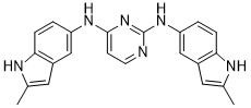 SMILES: | CC(N1)=CC2=C1C=CC(NC3=NC(NC4=CC5=C(NC(C)=C5)C=C4)=NC=C3)=C2 |