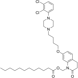 Chemical Name: | (7-(4-(4-(2,3-dichlorophenyl)piperazin-1-yl)butoxy)-2-oxo-3,4-dihydroquinolin-1(2H)-yl)methyl dodecanoate |