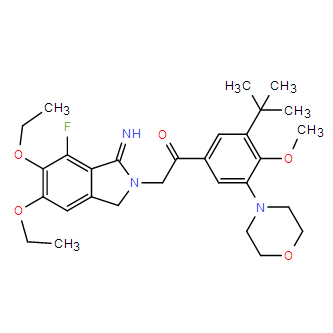 SMILES: | Br.CCOC1=C(OCC)C(F)=C2C(=C1)CN(CC(=O)C3=CC(C(C)(C)C)=C(OC)C(N4CCOCC4)=C3)C2=N |