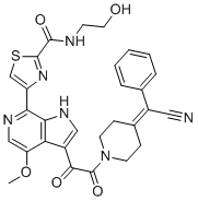 Chemical Name: | 4-(3-(2-(4-(cyano(phenyl)methylene)piperidin-1-yl)-2-oxoacetyl)-4-methoxy-1H-pyrrolo[2,3-c]pyridin-7-yl)-N-(2-hydroxyethyl)thiazole-2-carboxamide |