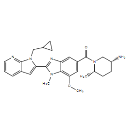 SMILES: | O=C(N1[C@@H](C)CC[C@@H](N)C1)C2=CC(OC)=C3C(N=C(C4=CC5=CC=CN=C5N4CC6CC6)N3C)=C2 |