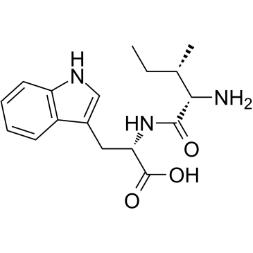 SMILES: | CC[C@H](C)[C@@H](C(=O)N[C@@H](CC1=CNC2=CC=CC=C21)C(=O)O)N |