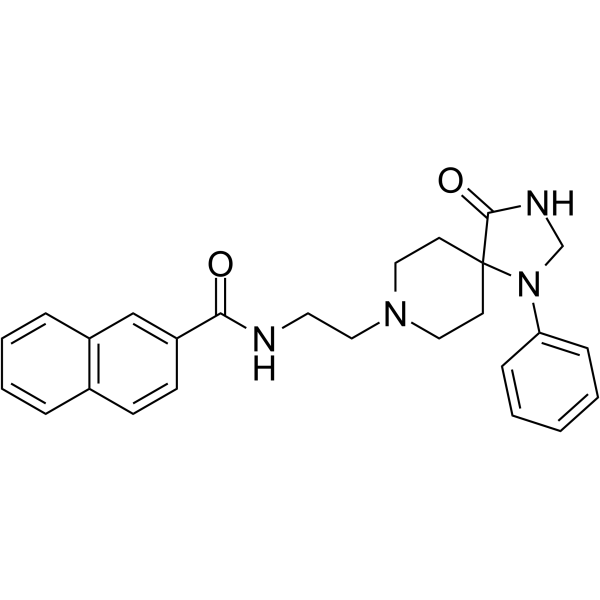 Synonyms: | N-[2-(4-oxo-1-phenyl-1,3,8-triazaspiro[4.5]decan-8-yl)ethyl]naphthalene-2-carboxamide;CAY10594;N-(2-(4-Oxo-1-phenyl-1,3,8-triazaspiro[4.5]decan-8-yl)ethyl)-2-naphthamide;CHEMBL511475;CTK8E9832;CHEBI:621137;MolPort-009-019-527;VU0155072-2;N-(2-(4-oxo-1-phenyl-1,3,8-triazaspiro[4.5]decan-8-yl)ethyl)naphthalene-2-carboxamide;HMS3648I04;BDBM50278167;N-(2-(4-Oxo-1-phenyl-1,3,8-triazaspiro[4.5]decan-8-yl)e;GLXC-03651;J-002889;SR-01000928454-2;N-[2-(4-oxo-1-phenyl-1,3,8-triazaspiro[4.5]decan-8-yl)ethyl]-2-naphthalenecarboxamide;SR-01000928454;DTXSID50648719;CS-0083803;CAY 10594;CAY-10594;N-[2-(4-oxo-1-phenyl-1,3,8-triazaspiro[4,5]dec-8-yl)ethyl]-2-naphthalenecarboxamide;AKOS028114472;HY-121983;D93294;EX-A3212;N-(2-{4-oxo-1-phenyl-1,3,8-triazaspiro[4.5]decan-8-yl}ethyl)naphthalene-2-carboxamide;1130067-34-3;BCP30751;AS-55973;DA-71975;VU0155072;Q27166784;SCHEMBL10311310;N-(2-(4-Oxo-1-phenyl-1,3,8-triazaspiro[4.5]decan-8-yl)ethyl)-2-naphthamide, 72;CHEBI:95023;N-[2-(4-Oxo-1-phenyl-1,3,8-triazaspiro[4.5]decan-8-yl)ethyl]naphthalene-2-carboxamide |