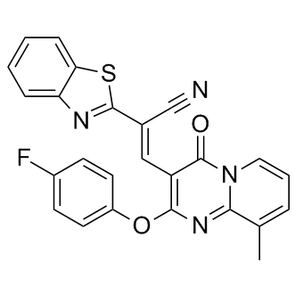 SMILES: | N#C/C(C1=NC2=CC=CC=C2S1)=CC3=C(N=C4C(C)=CC=CN4C3=O)OC5=CC=C(C=C5)F |