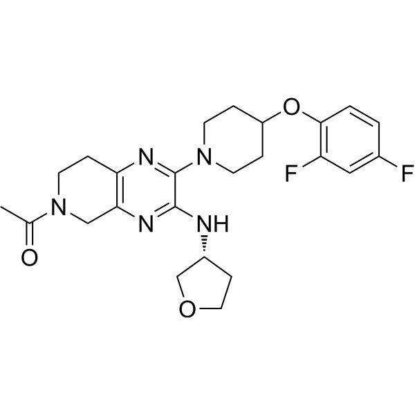 SMILES: FC1C([H])=C(C([H])=C([H])C=1OC1([H])C([H])([H])C([H])([H])N(C2C(=NC3C([H])([H])N(C(C([H])([H])[H])=O)C([H])([H])C([H])([H])C=3N=2)N([H])[C@@]2([H])C([H])([H])OC([H])([H])C2([H])[H])C([H])([H])C1([H])[H])F