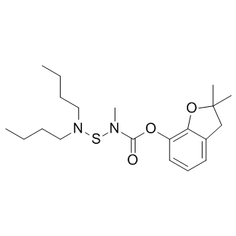 Carbosulfan inhibited relatively potently CYP3A4 and moderately CYP1A1/2 and CYP2C19 in pooled HLM (human livers). Carbosulfan activation is predominantly catalyzed in humans by CYP3A4.