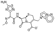 SMILES: | CO/N=C(c1nc(N)sn1)\C(N[C@H]2[C@H]3SCC(C[n+](cc4)c5n4nccc5)=C(C([O-])=O)N3C2=O)=O |