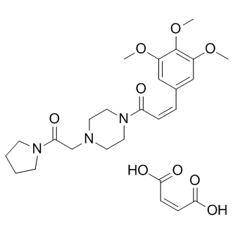 SMILES: | OC(/C=C\C(O)=O)=O.COC1C(OC)=C(OC)C=C(/C=C/C(N2CCN(CC(N3CCCC3)=O)CC2)=O)C=1 |