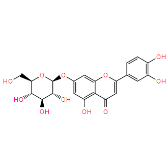 SMILES: | O=C(C=C(C1=CC(O)=C(O)C=C1)OC2=CC(O[C@@H]([C@@H]([C@@H](O)[C@@H]3O)O)O[C@@H]3CO)=C4)C2=C4O |