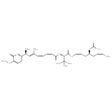 Chemical Name: | [(1Z,4S,6Z)-1-[[(2S)-2-[[(2Z,4Z,6E,8S)-8-[(2S)-5-methoxy-6-oxo-2,3-dihydropyran-2-yl]-6-methylnona-2,4,6-trienoyl]amino]-3,3-dimethylbutanoyl]amino]octa-1,6-dien-4-yl] carbamate |