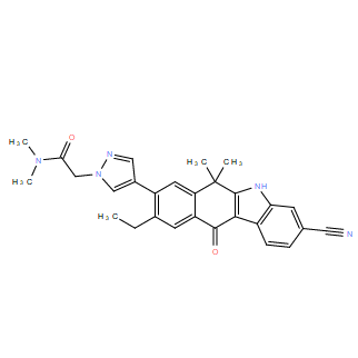 Chemical Name: | 2-(4-(3-cyano-9-ethyl-6,6-dimethyl-11-oxo-6,11-dihydro-5H-benzo[b]carbazol-8-yl)-1H-pyrazol-1-yl)-N,N-dimethylacetamide |