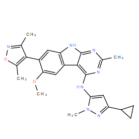 Chemical Name: | N-(3-Cyclopropyl-1-methyl-1H-pyrazol-5-yl)-7-(3,5-dimethylisoxazol-4-yl)-6-methoxy-2-methyl-9H-pyrimido[4,5-b]indol-4-amine |