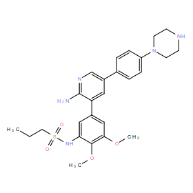 Chemical Name: | N-(5-(2-amino-5-(4-(piperazin-1-yl)phenyl)pyridin-3-yl)-2,3-dimethoxyphenyl)propane-1-sulfonamide |