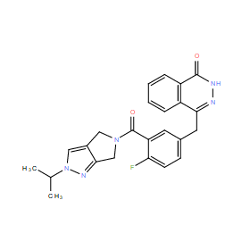 Chemical Name: | 4-(4-fluoro-3-(2-isopropyl-2,4,5,6-tetrahydropyrrolo[3,4-c]pyrazole-5-carbonyl)benzyl)phthalazin-1(2H)-one |