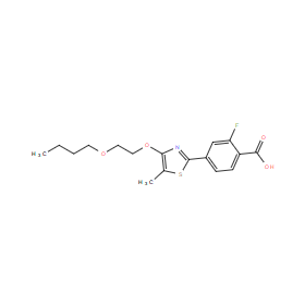 SMILES: | C(O)(=O)C1=CC=C(C2=NC(OCCOCCCC)=C(C)S2)C=C1F |