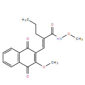 Chemical Name: | (E)-N-methoxy-2-((3-methoxy-1,4-dioxo-1,4-dihydronaphthalen-2-yl)methylene)pentanamide |