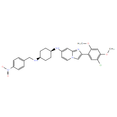Chemical Name: | (1s,4s)-N1-(2-(5-chloro-2,4-dimethoxyphenyl)imidazo[1,2-a]pyridin-7-yl)-N4-(4-nitrobenzyl)cyclohexane-1,4-diamine |