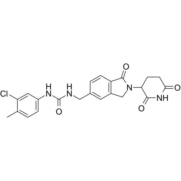 Synonyms: | CC-885;N-(3-chloro-4-methylphenyl)-N'-[[2-(2,6-dioxo-3-piperidinyl)-2,3-dihydro-1-oxo-1H-isoindol-5-yl]methyl]-urea;1-(3-chloro-4-methylphenyl)-3-((2-(2,6-dioxopiperidin-3-yl)-1-oxoisoindolin-5-yl)methyl)urea;1-(3-chloro-4-methylphenyl)-3-[[2-(2,6-dioxopiperidin-3-yl)-1-oxo-3H-isoindol-5-yl]methyl]urea;GTPL9224;TQR1238;s8300;J3.571.763C;1-(3-Chloro-4-methyl-phenyl)-3-[2-(2,6-dioxo-piperidin-3-yl)-1-oxo-2,3-dihydr |